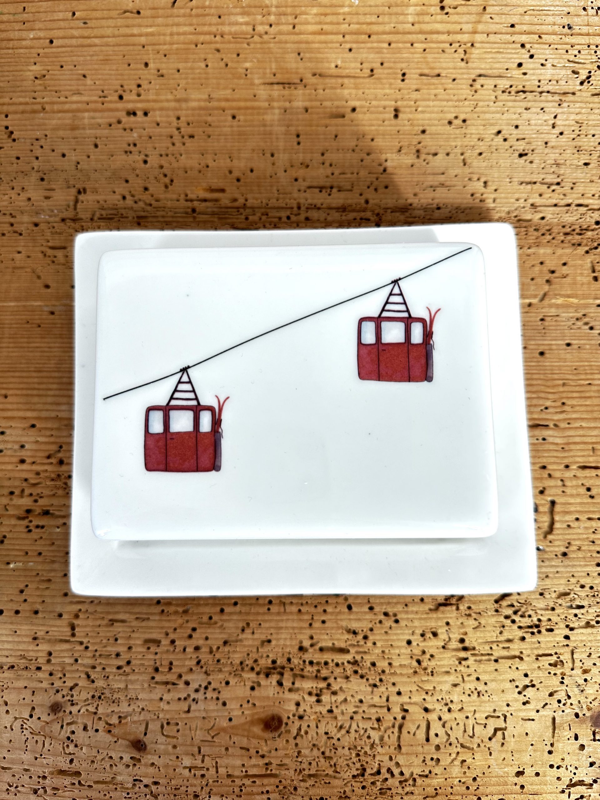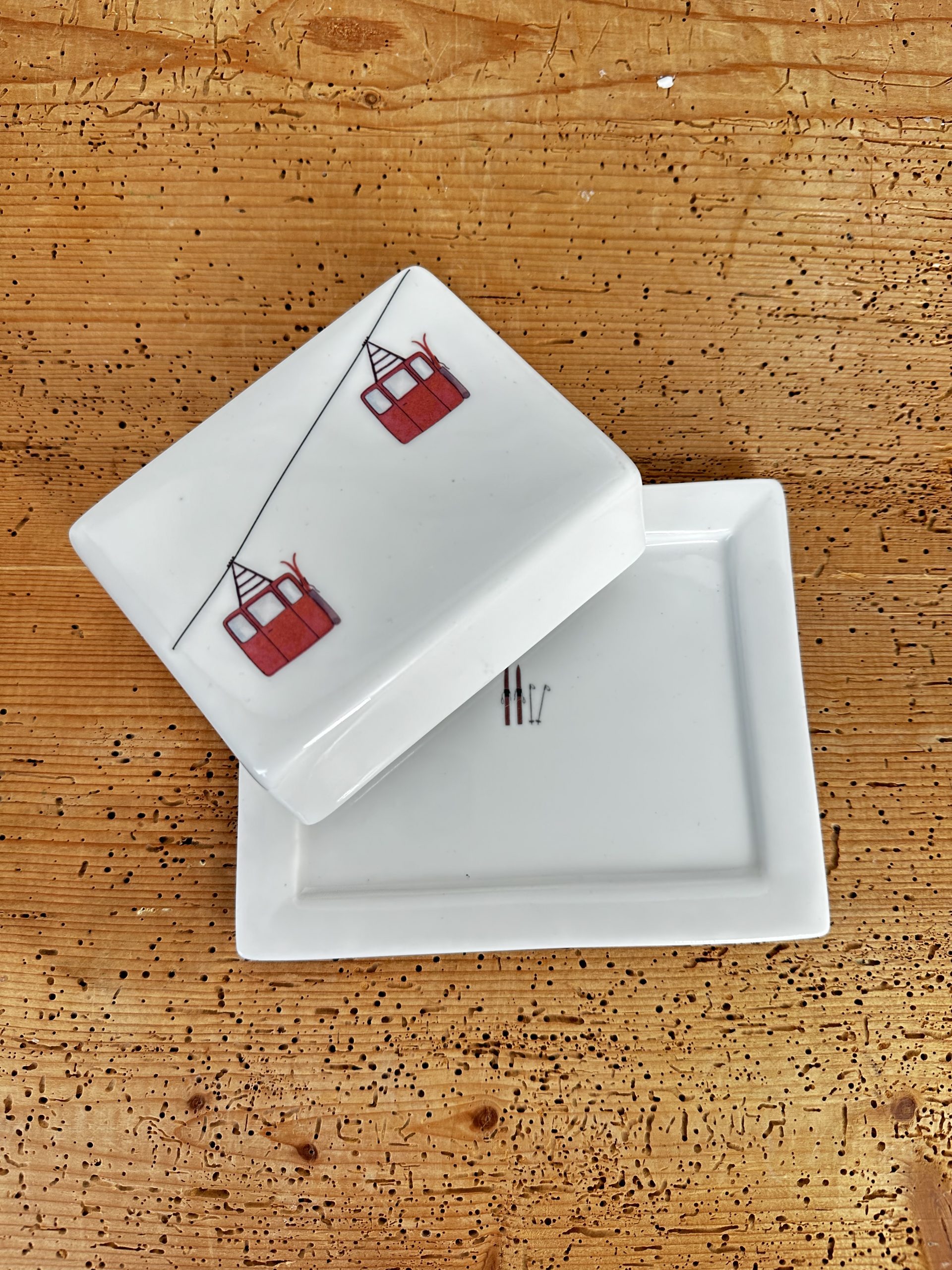 Große Butterdose (13x16x4,5 cm) für 250 gr Butter. Das Motiv wurde bei über 800 Grad in meinem Brennofen gebrannt und ist somit spülmaschinengeeignet!